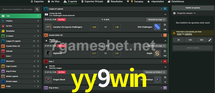 O yy9win oferece uma grande seleção de opções de apostas em e-sports com probabilidades competitivas